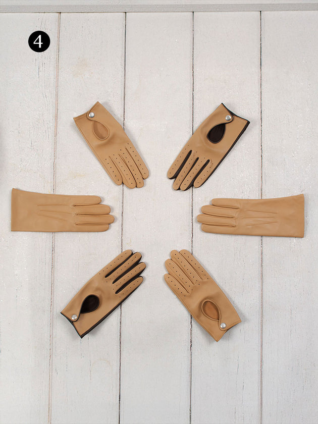 1. Thruxton, Women's Leather Driving Gloves in Toffee | Oulton, Women's Touchscreen Leather Driving Gloves in Toffee | Felicity, Women's Three-Point Silk-Lined Leather Gloves in Toffee